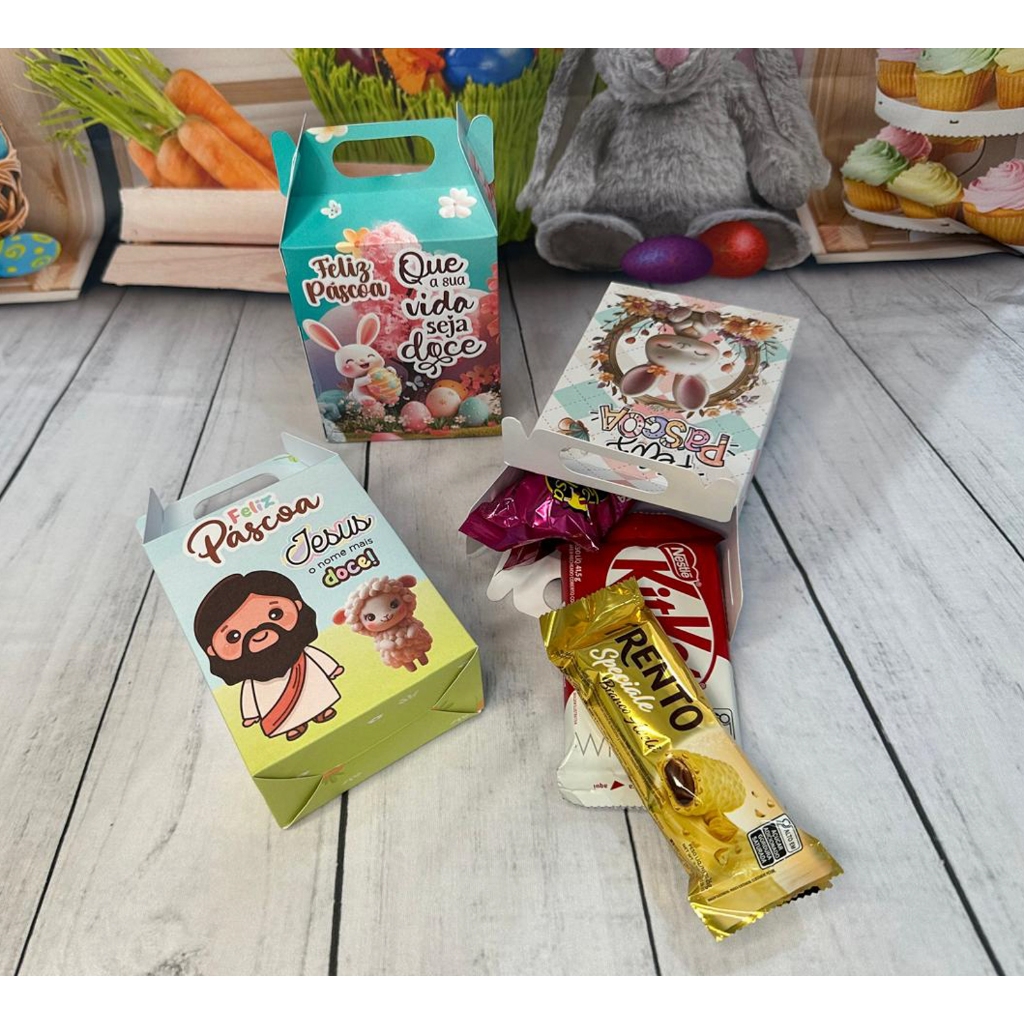 10 Caixas Maleta Para Doces Lembrancinha Tema Feliz Páscoa