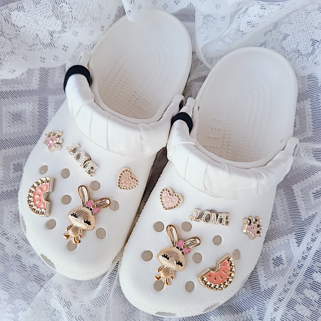 10 Pçs Encantos Pó Dourado Melancia Coelho Jibbitz DIY Moda Acessórios De Sapato