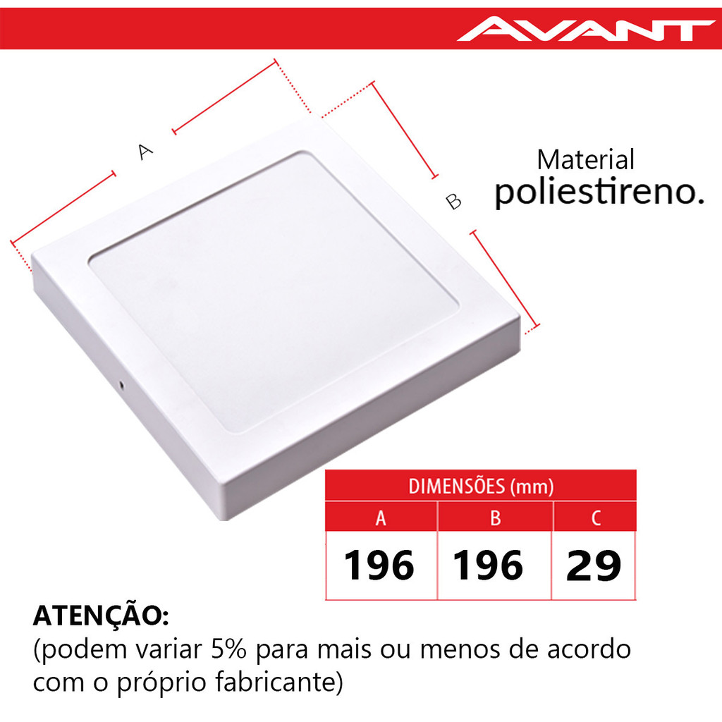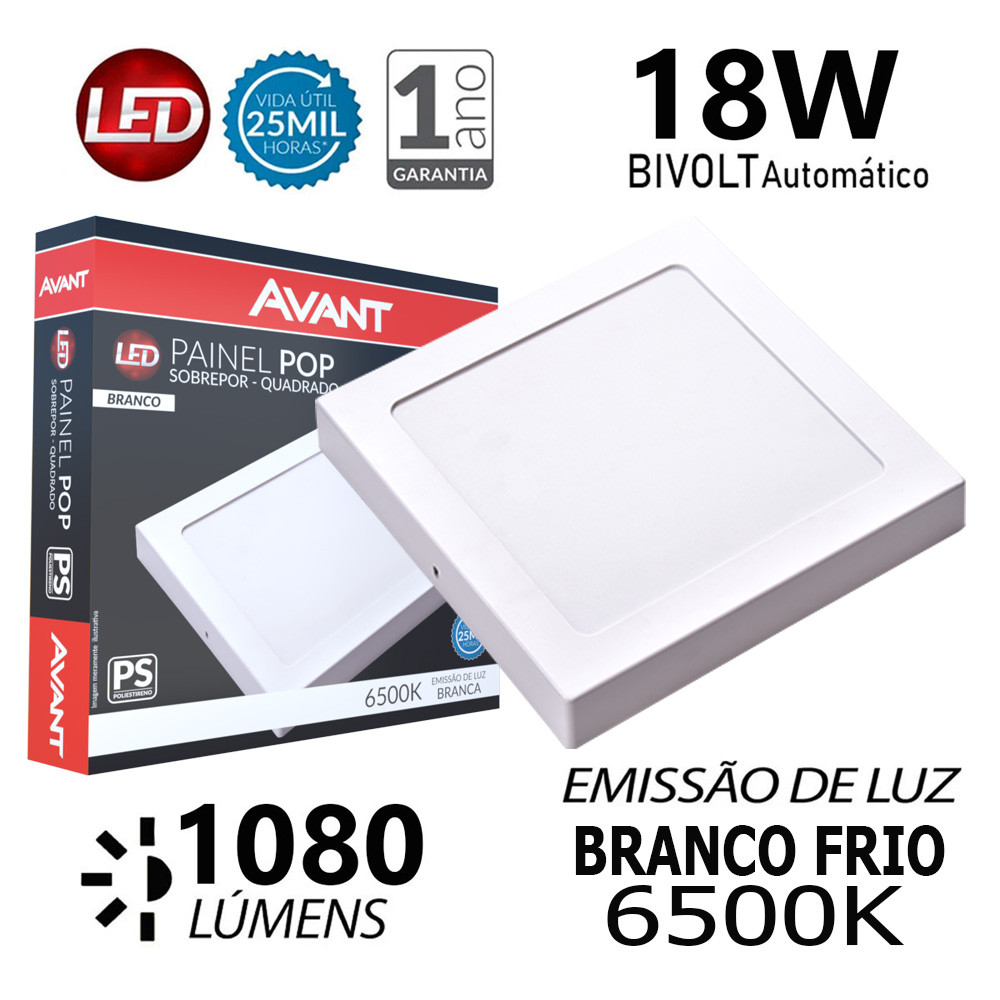 10 Painel Led Sobrepor Quadrado Luz Branca 6500W 18w Bivolt Avant