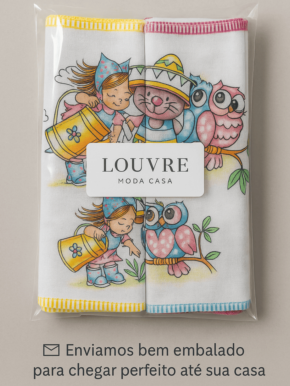 Kit 10 Panos de Prato Estampados 100% Algodão Grosso com Viés Reforçado 65x40 cm