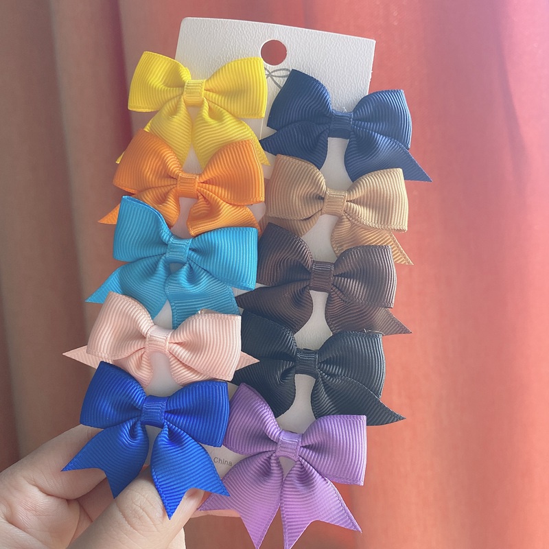 10 Peças Mini Laços De Cabelo De Fita Para Meninas-Grampos Gorgorão Doce , Presilhas Boutique Antiderrapantes Crianças E