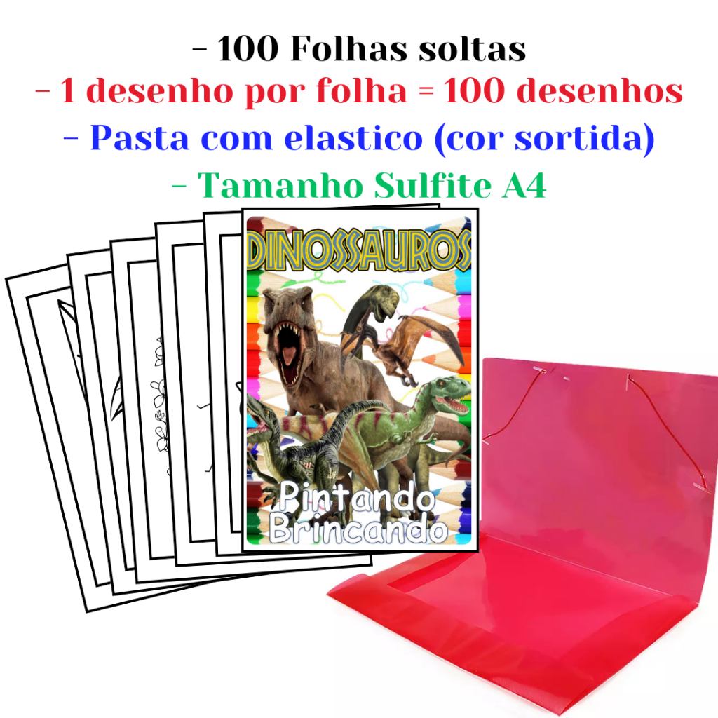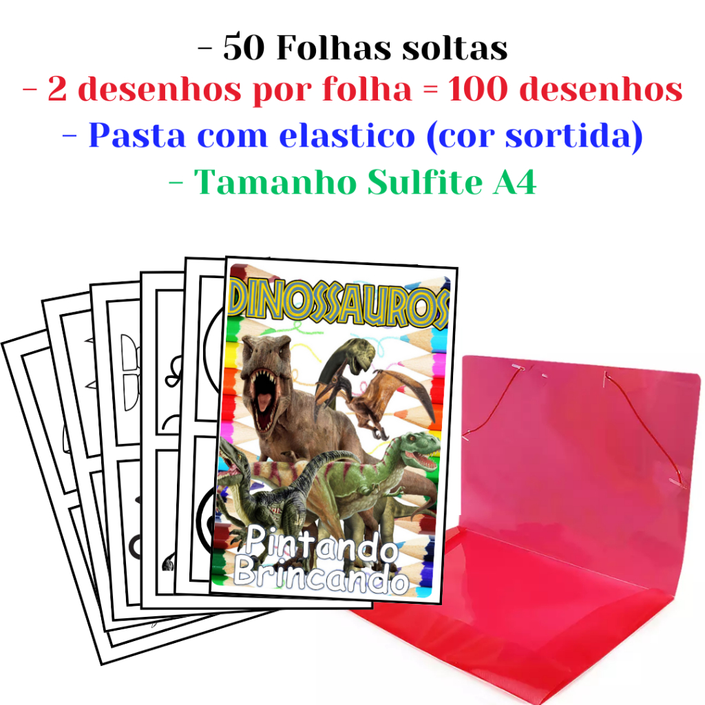 100 Desenhos Para Pintar e Colorir Dinossauros - Folhas A4 Sulfite Avulsas/Soltas
