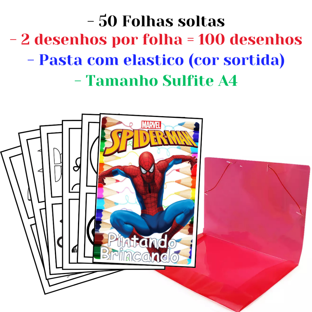 100 Desenhos Para Pintar e Colorir Homem Aranha Spider Man - Folhas A4 Sulfite Avulsas/Soltas