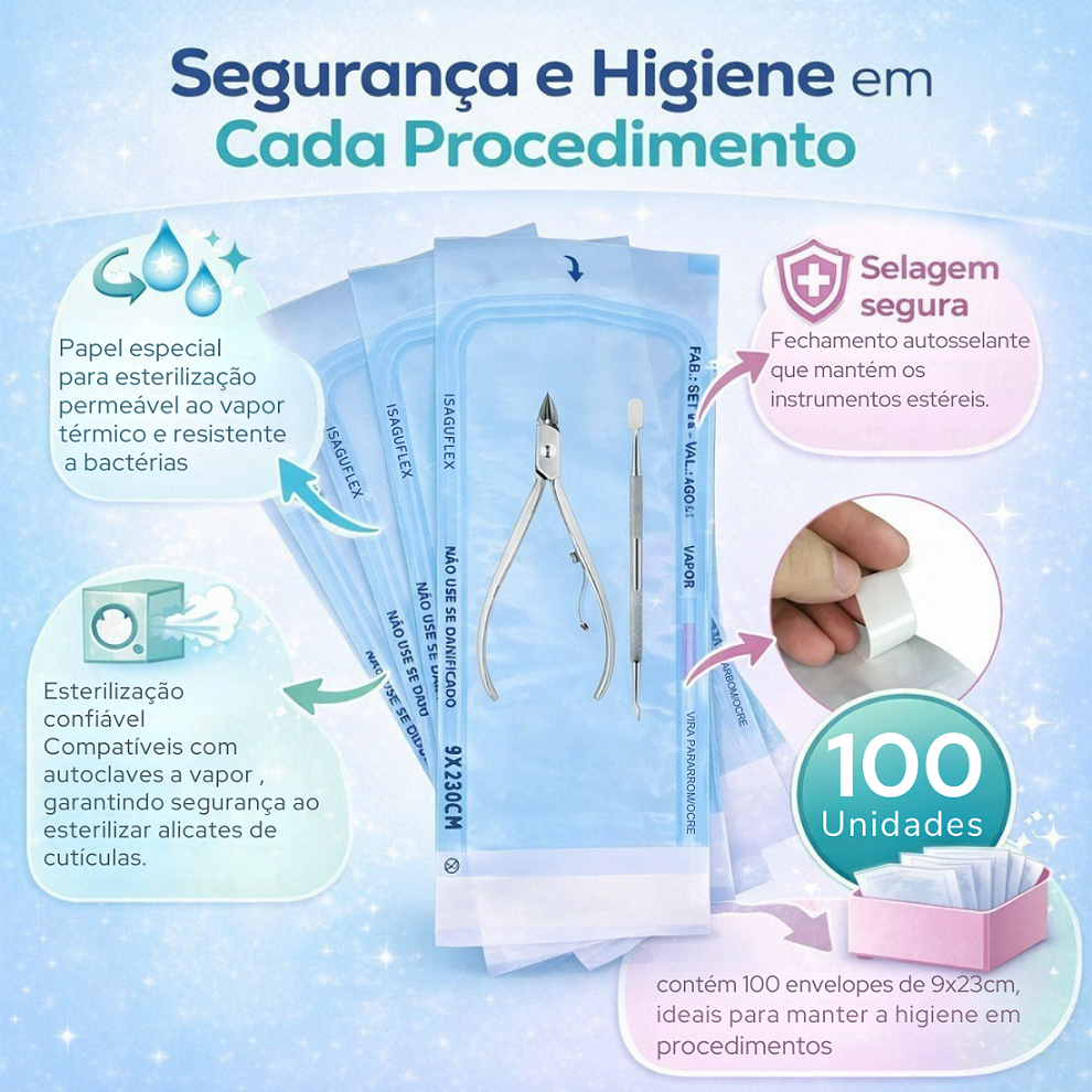 100 Unidades Envelope 9x23cm Autoclave Esterilização Auto Selante Papel Grau Cirúrgico