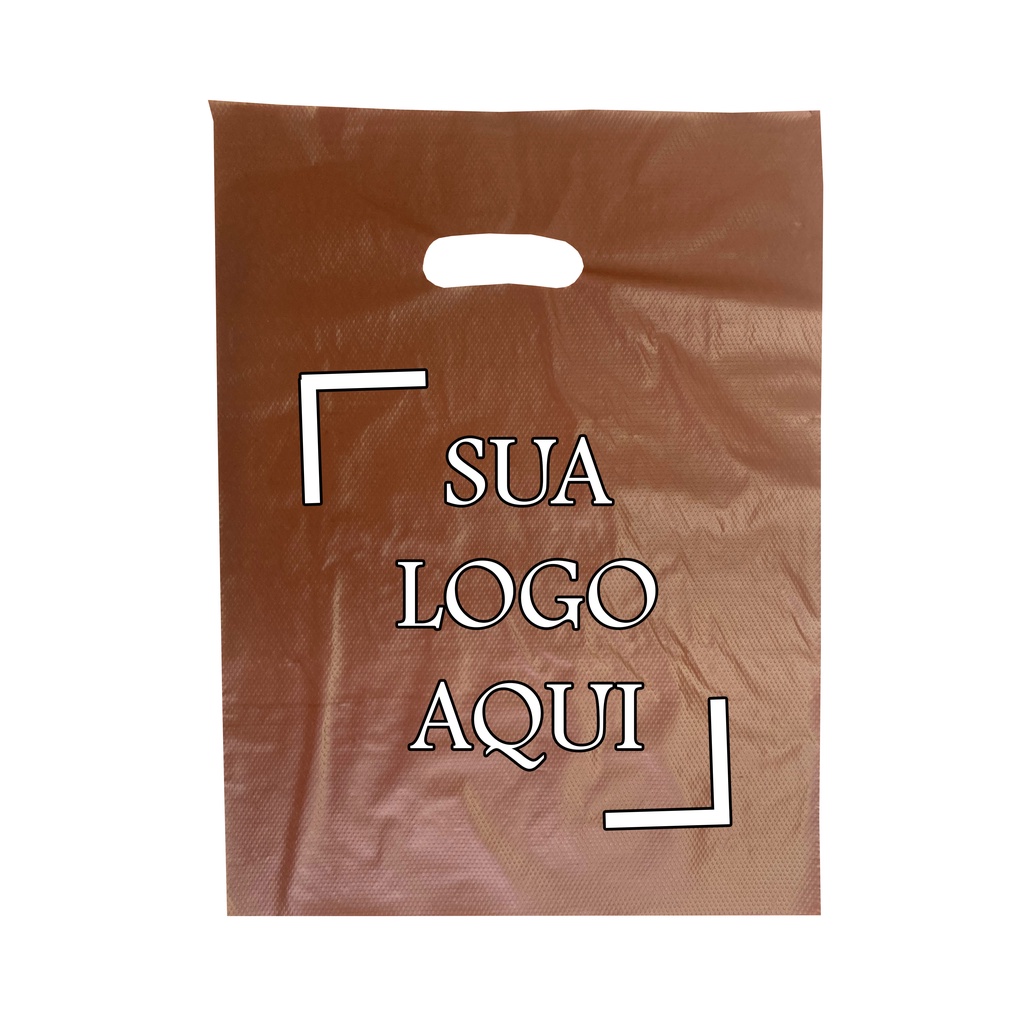 1000 sacolas plásticas personalizadas - Alça vazada / Boca de Palhaço - 30x40 - 2 cores na impressão