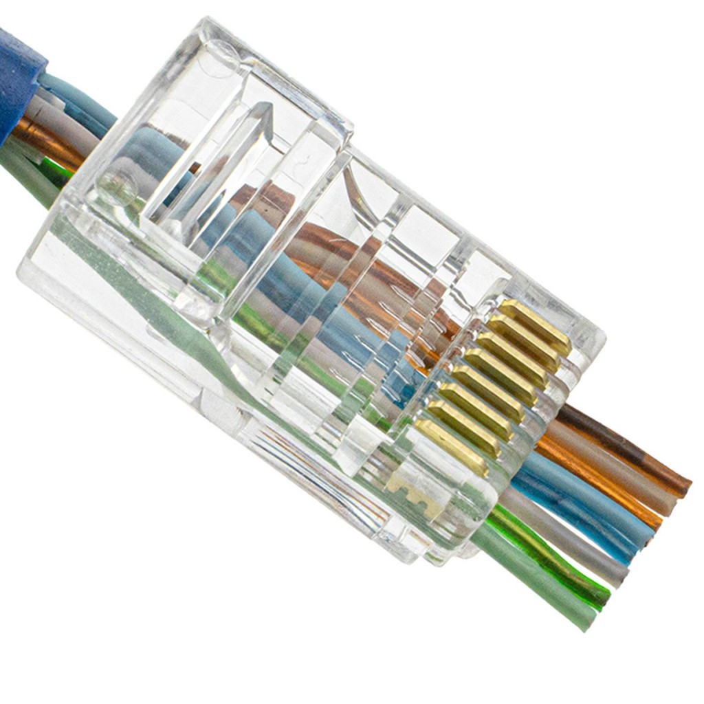100X Conector RJ45 Vazado / Passagem EZ Crimp Cat.5E 8 Pinos