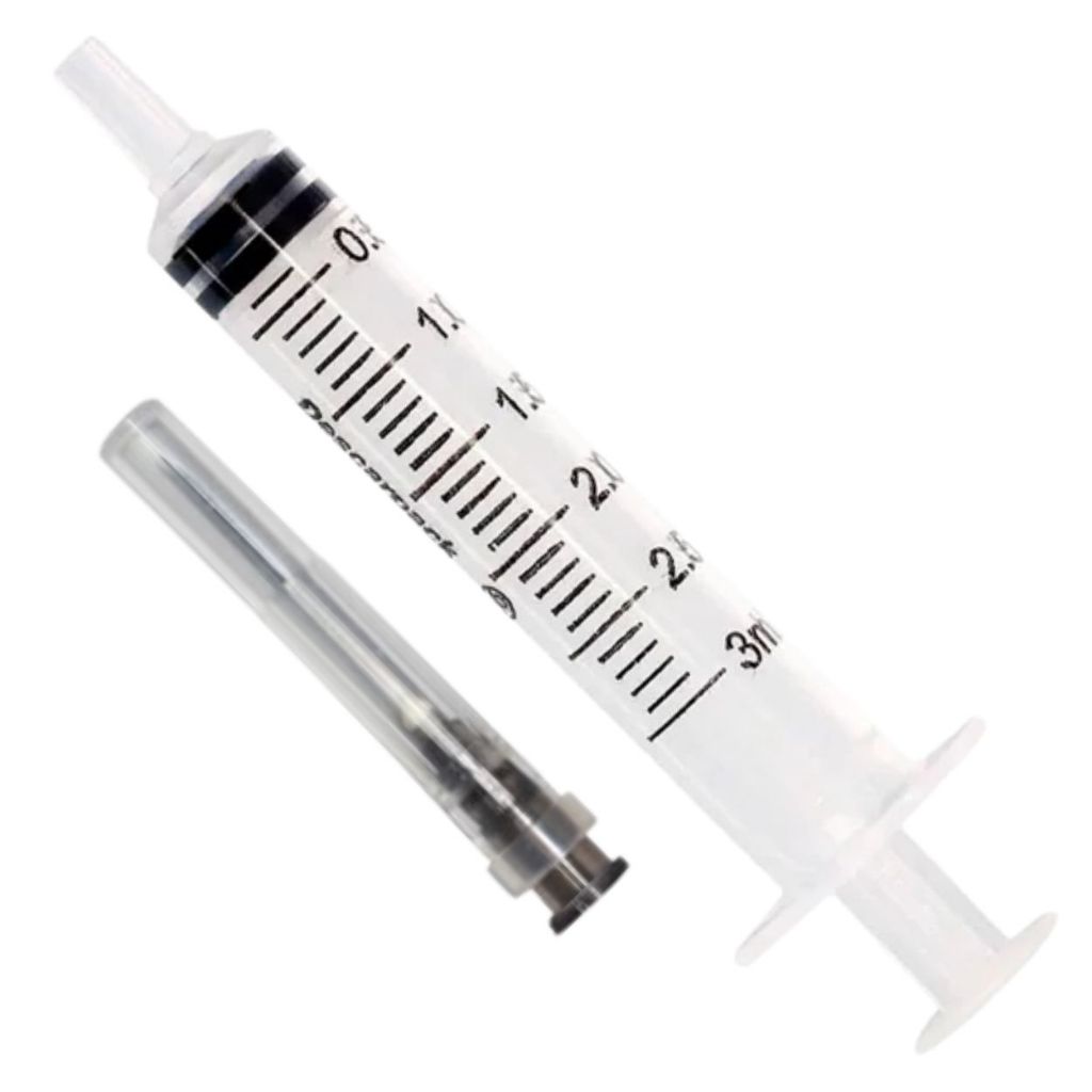 100un Seringa Bico Encaixe Luer Slip 3ml Com Agulha 25x0,7mm Marca Descarpack