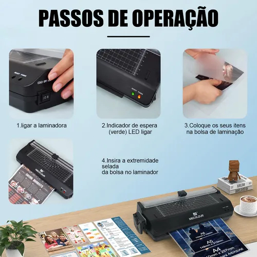 110/220V Plastificadora Nova Laminadora Refiladora A4 A5 A6 3x1 Quente Frio Mecolour