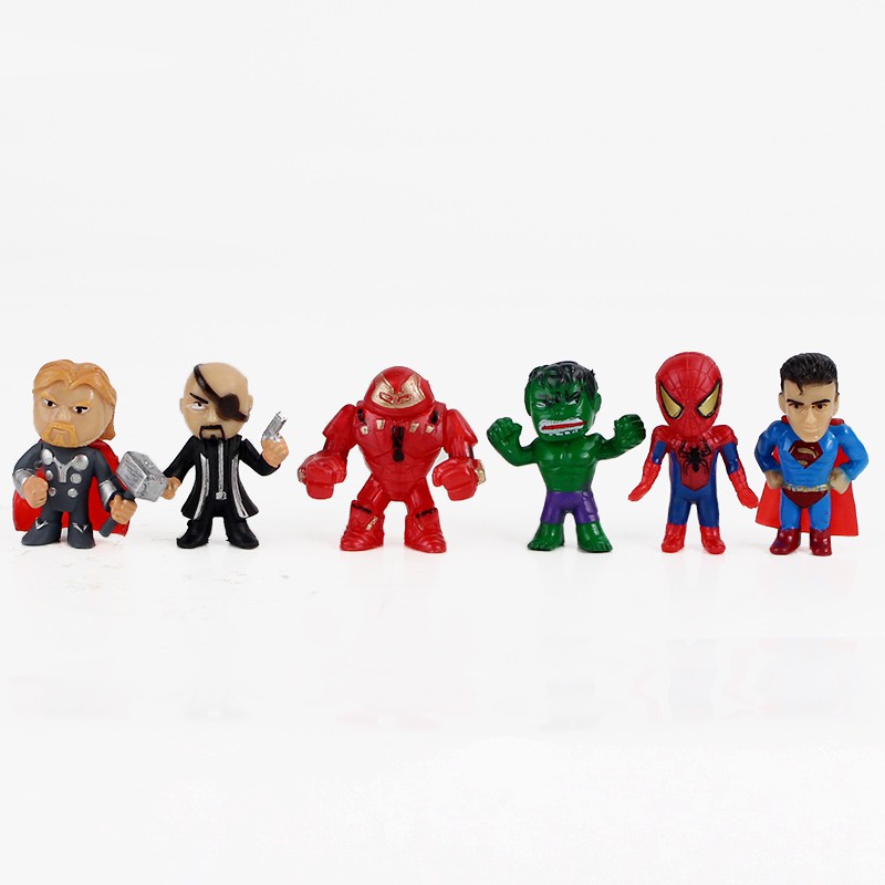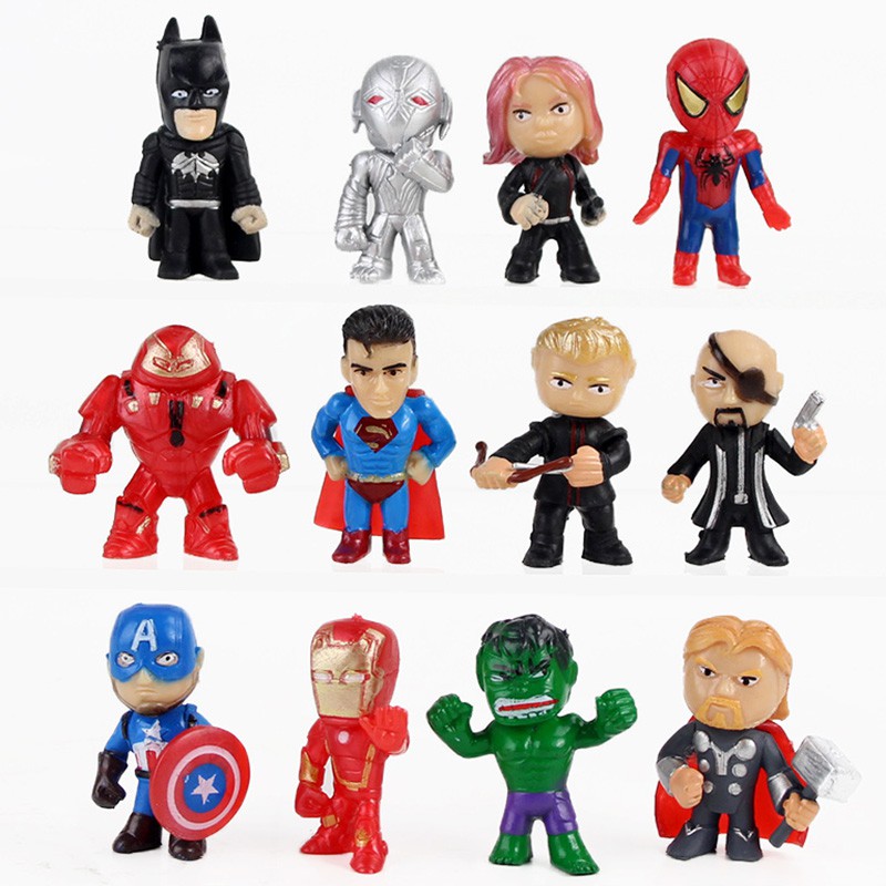 12 Pçs/Set Nova Versão Q Brinquedos Mini Os Vingadores Figuras Homem De Ferro-Aranha Batman Hulk Thor Figura De Ação Mod