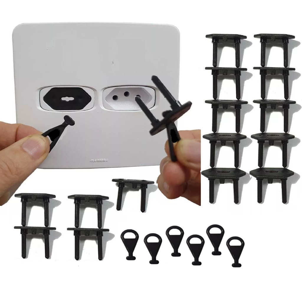 12 Protetores de Tomada + 5 Chavinhas Segurança Bebê Antichoque