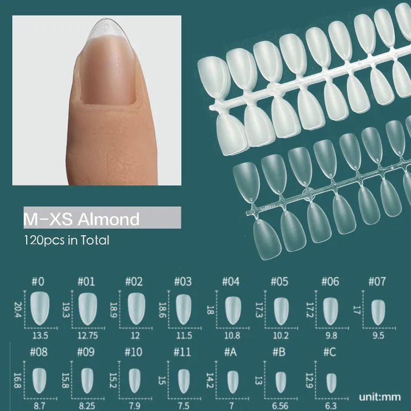 120pcs XXS Super Amêndoa Curta Capa Completa De Esculpida Dicas De Unhas Em Gel Macio Prensa Falsas Feitas À Medida Pa