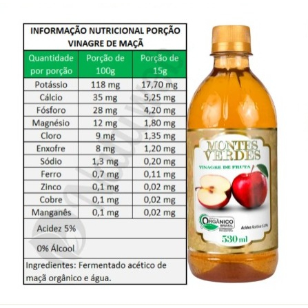 12x Vinagre De Maçã Orgânico - 5% de Acidez - Montes Verdes 530ml