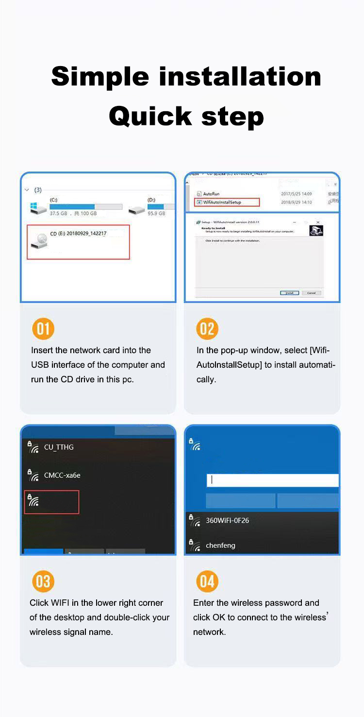 Adaptador Wi-Fi USB 4 Antenas Placa De Rede Unidade Livre Banda Dupla 2.4G 5Ghz Receptor Sem Fio Para Windows X