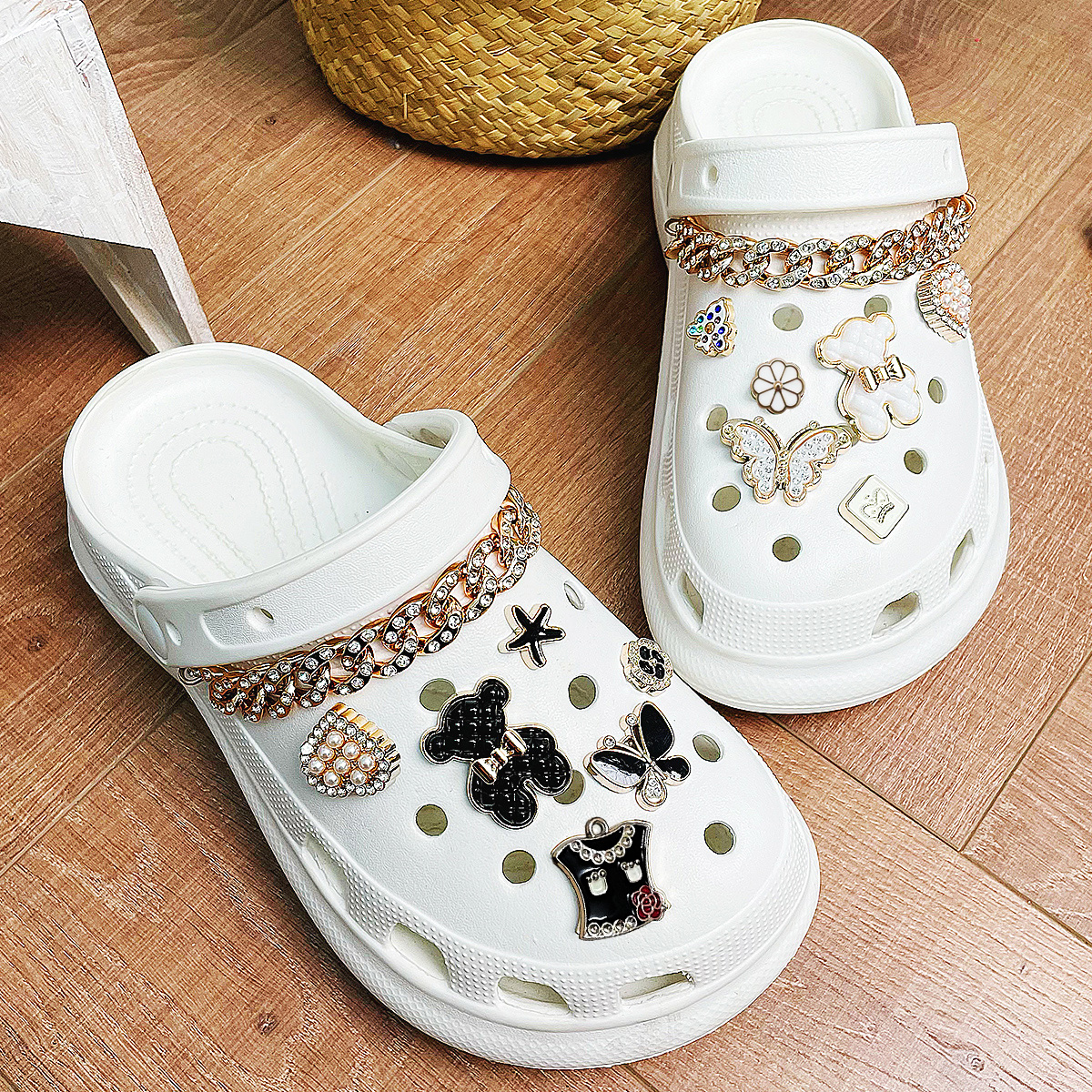 14 Peças Amuletos Acessórios De Sapato De Corrente De Desenho Animado Branco Para Mulheres Conjunto Decorativo Divertido