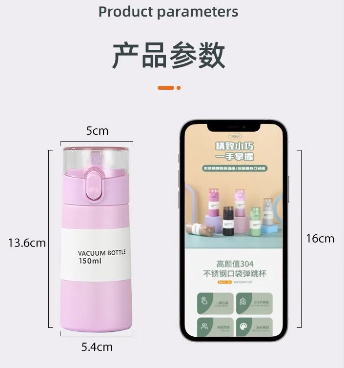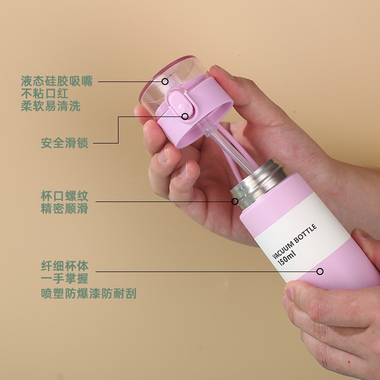 150ml/250ml Mini Frasco Portátil De Parede Dupla De Aço Inoxidável 304 A Vácuo Isolado Térmico De Água Com Palha