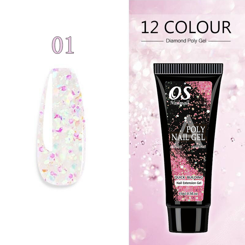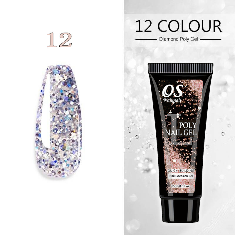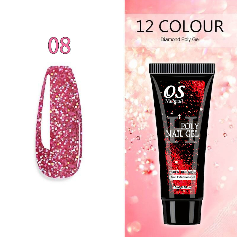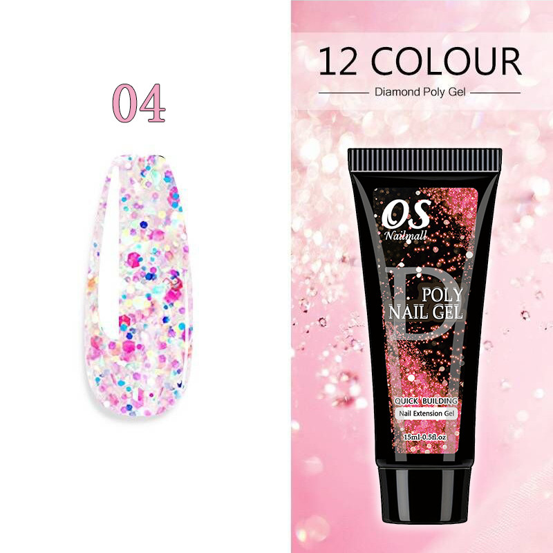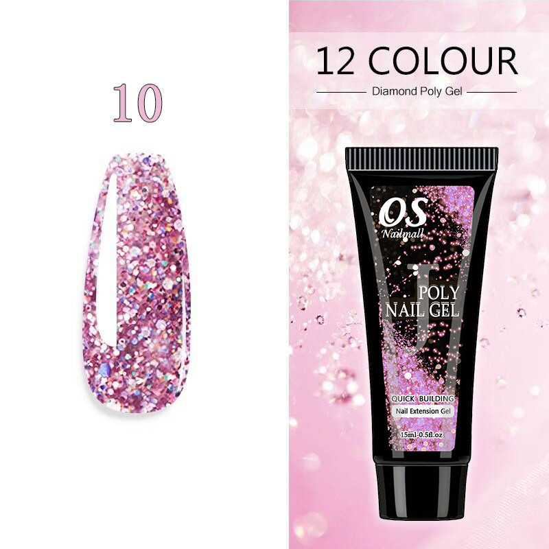 15ML Poli Prego Gel Extensão Do-12 Cores Glitter Construtor Ferramenta De Manicure
