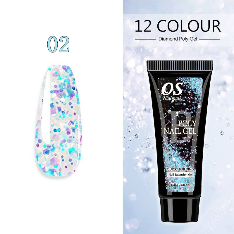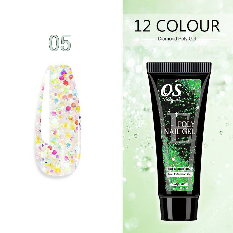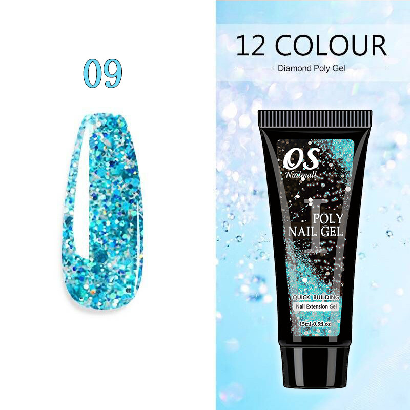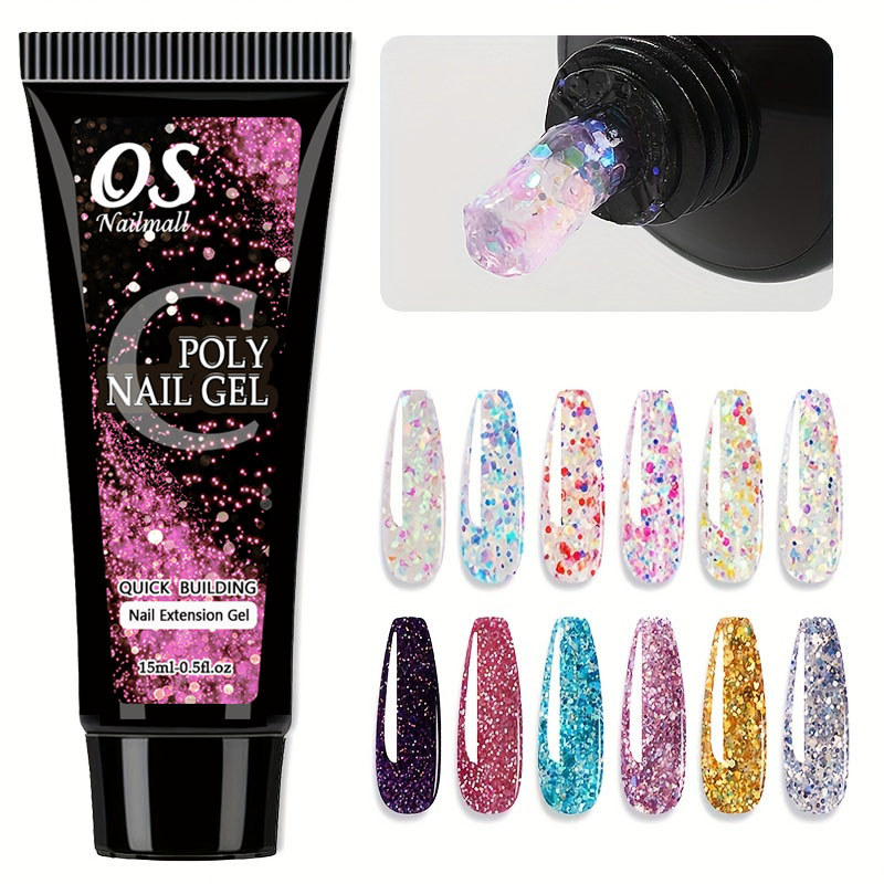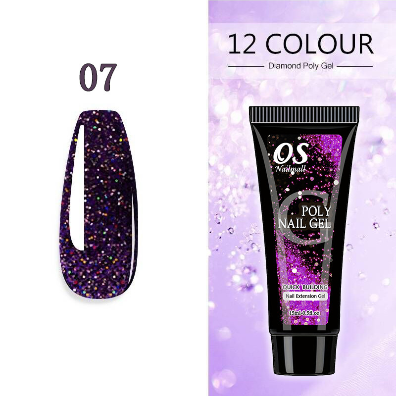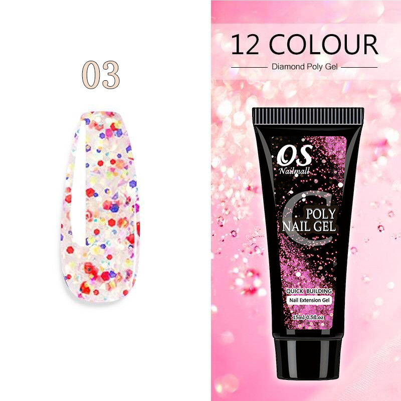 15ML Poli Prego Gel Extensão Do-12 Cores Glitter Construtor Ferramenta De Manicure