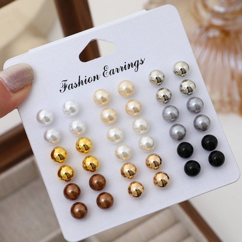 18 Pares De Brincos De Pérola Falsa Da Moda , Prata , Ouro , Pérolas Pretas Para Mulheres 2025