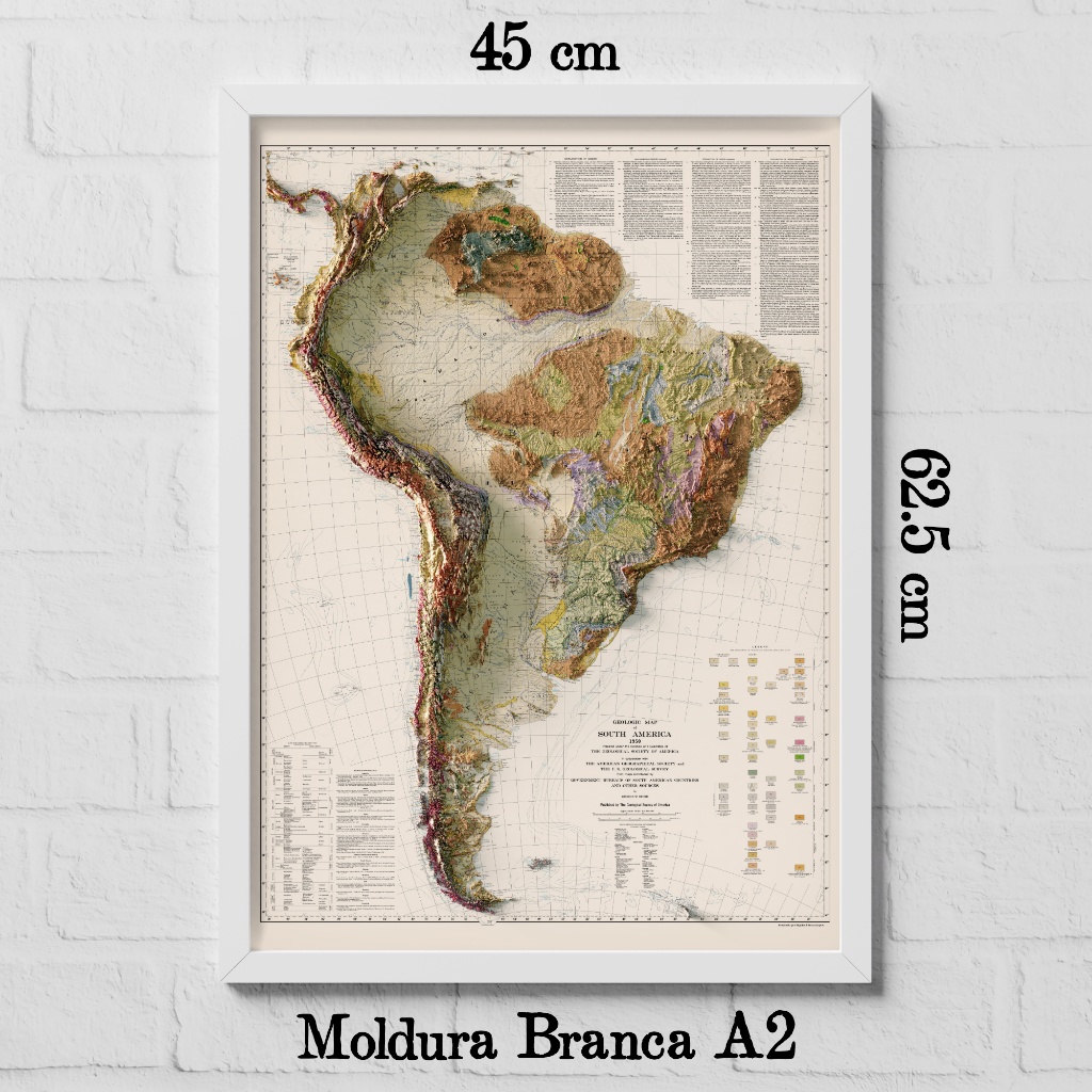 1950 Mapa Geológico América do Sul Topográfico - Versão com Moldura