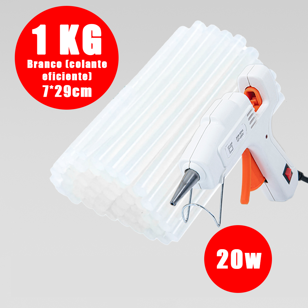 1KG Bastão De Cola Quente Fino (7mm*29cm) 80 Pecas Bastões de Cola + Pistola De Cola Quente Bivolt 10w/20w
