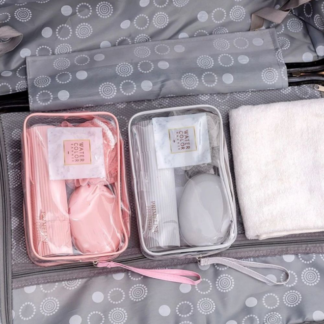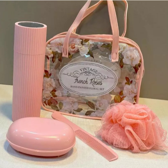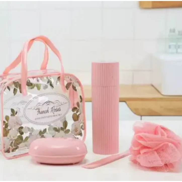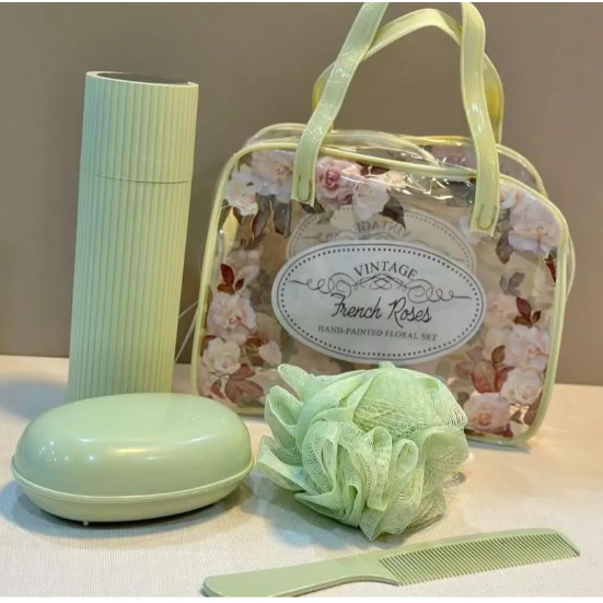 1Kit de Viagem com 5Peças Kit de Viagem Com Bolsa Porta Escova Pente Saboneteira e Ducha Compacto Para Viagem