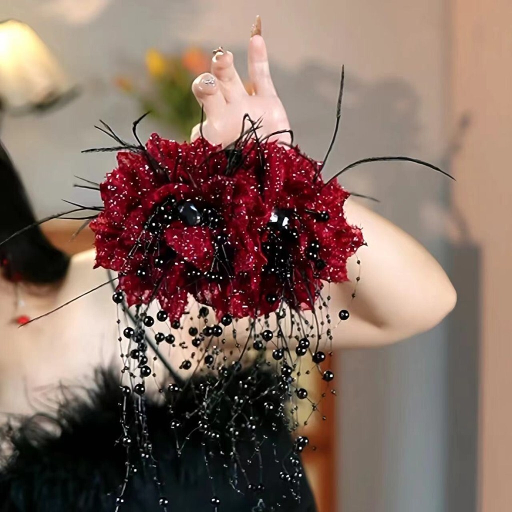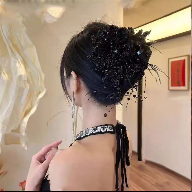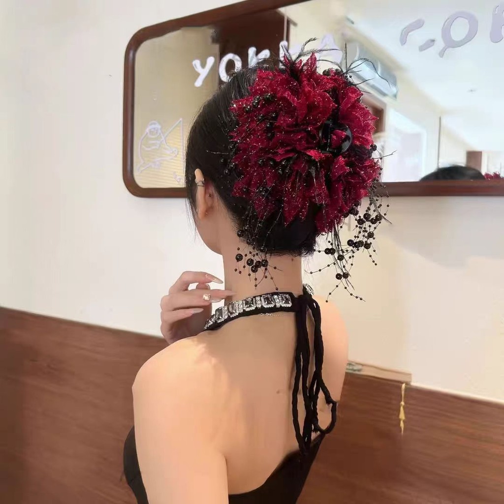 1Pc Vermelho Preto Peônia Hairpin Meninas Elegante Garra De Cabelo OOTD Roupa Diária Primavera Na Moda