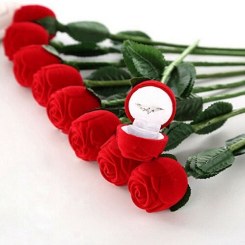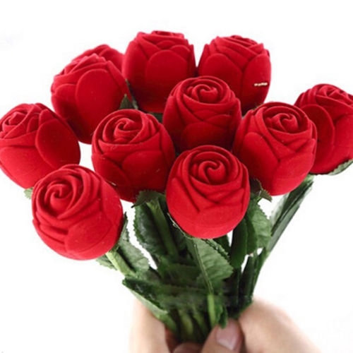 1pc Caixa De Armazenamento De Jóias De Rosa Vermelha , Elegante Vitrine De Anel De Flor Para Noivado Ou Presente (Sem Ra