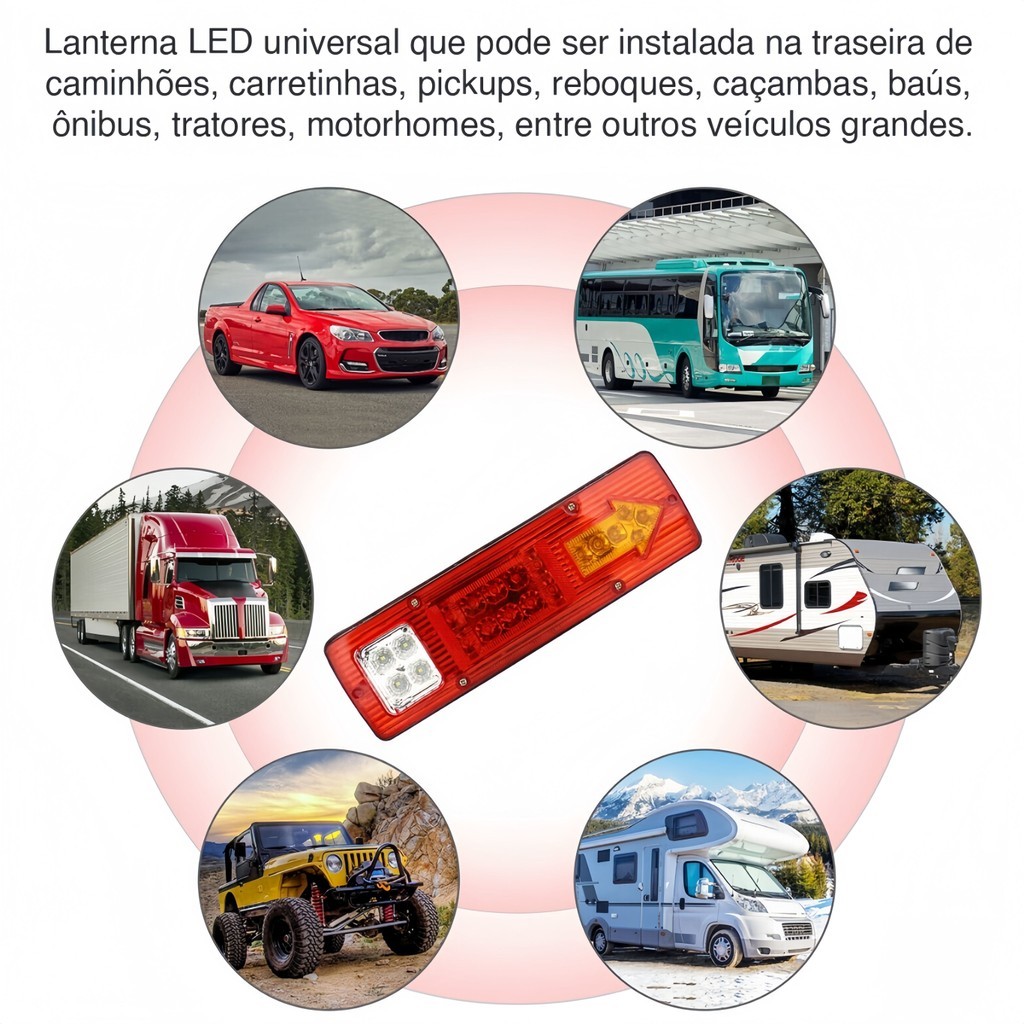 1pc Lanterna Traseira Caminhão Carretinha Led 12V 29,5cm Luz Seta Ré Freio