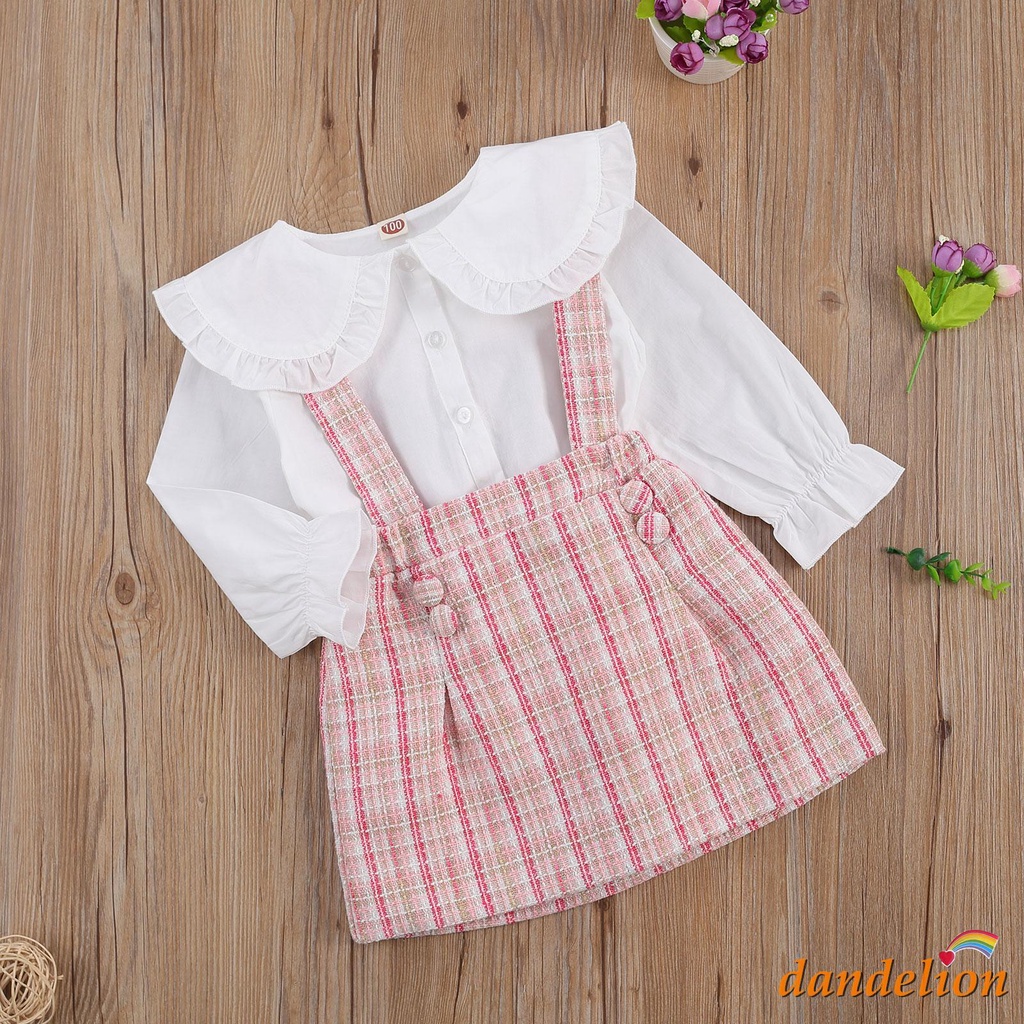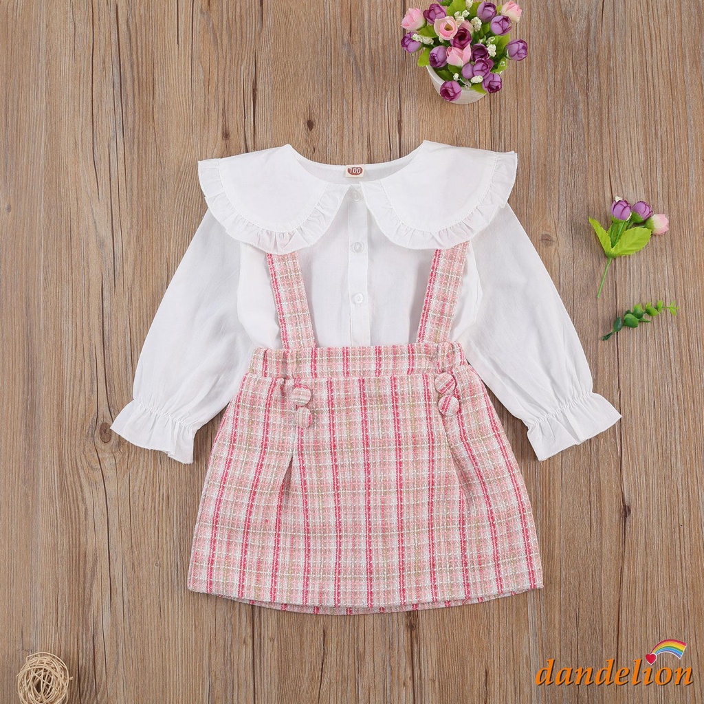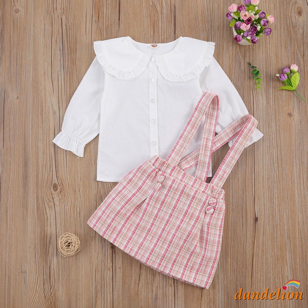 2-7 Anos Conjunto De Roupas Para Meninas , Peter Pan Collar Camisa De Manga Comprida + Saia Suspender Plaid