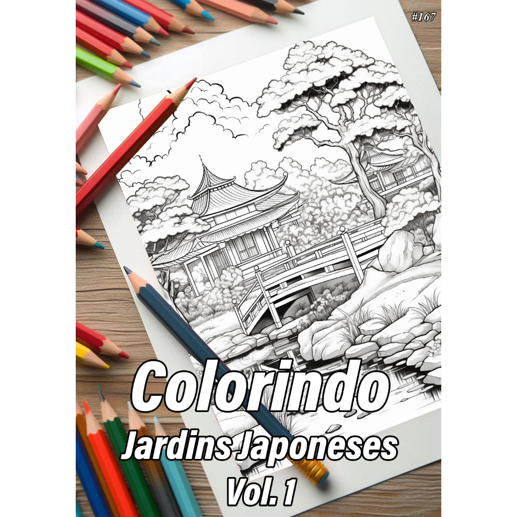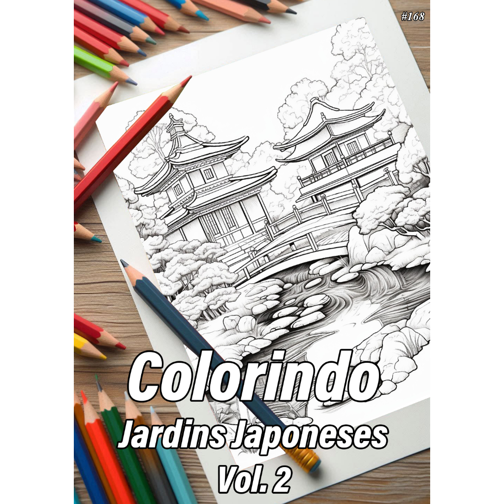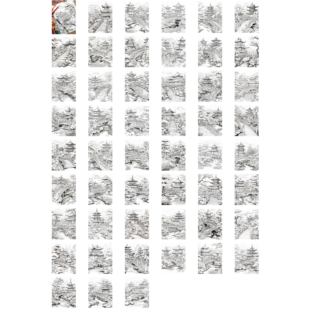 2 Cadernos Com 50 Desenhos Para Colorir Jardins Japoneses Vol. 1 + Vol. 2 - Tamanho A4 (21x29,7cm) K40