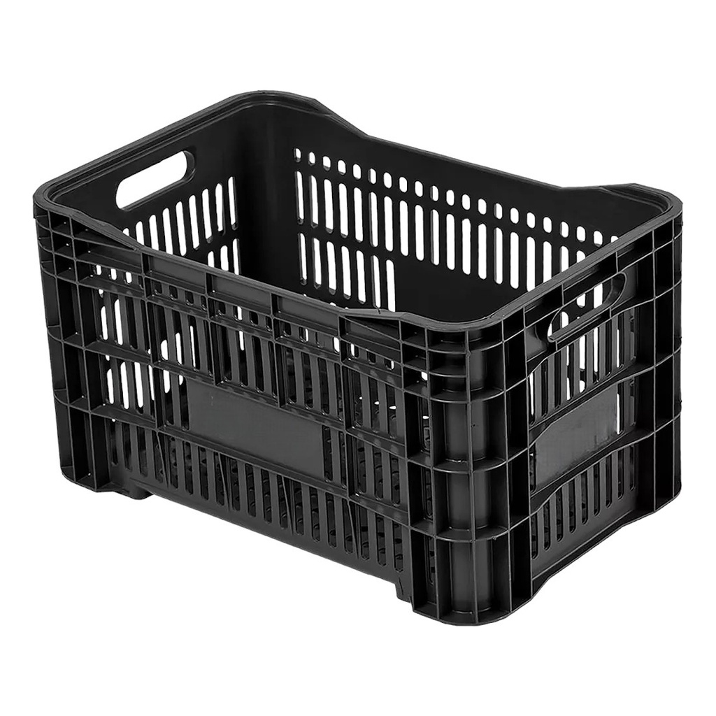 2 Caixas Plastica Hortifruti Compra Vazada Empilhavel Preta Mercado Frutas Organizacao