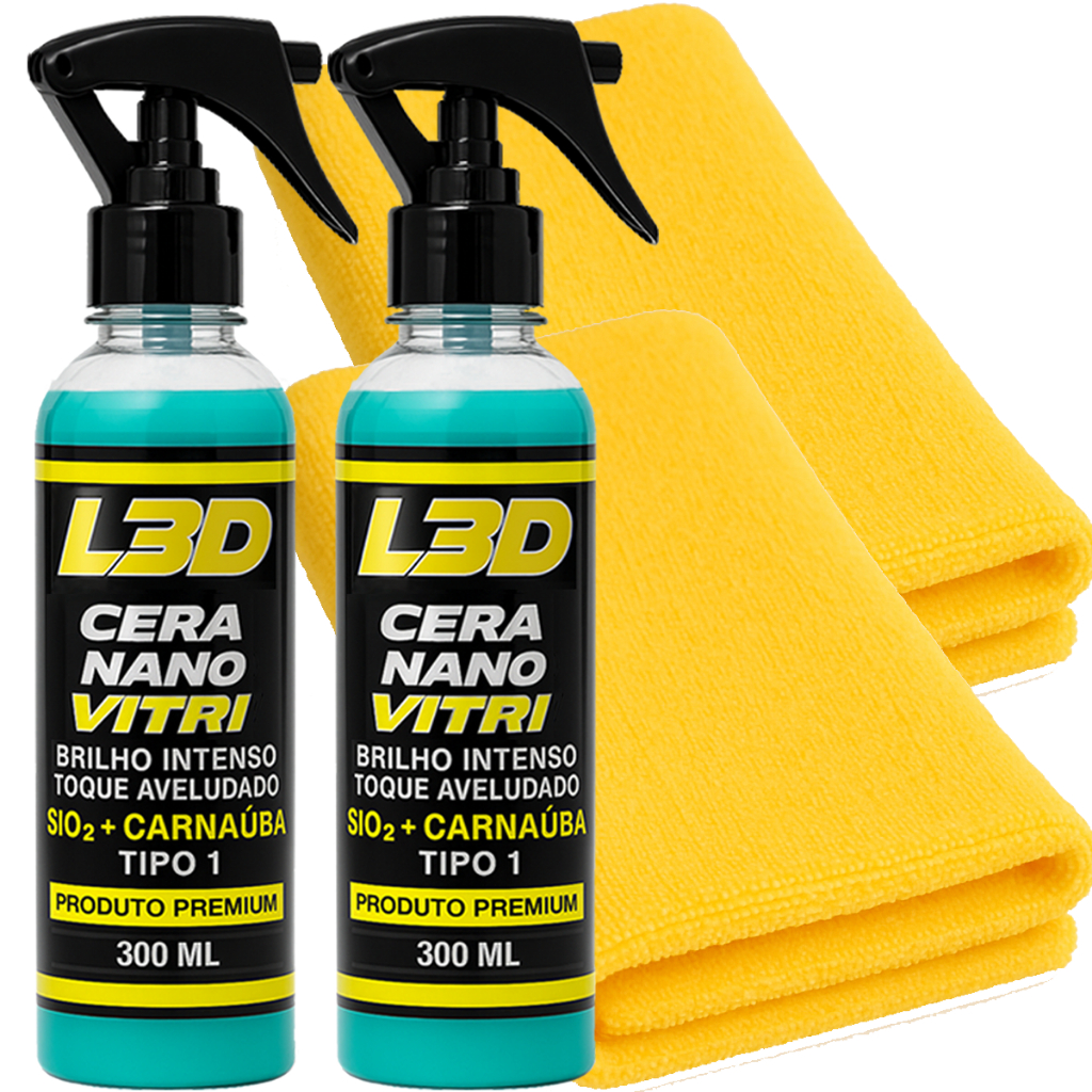 2 Ceras Cristalizadoras L3D + 2 Flanelas Microfibra Brilho Intenso e Fácil Aplicação