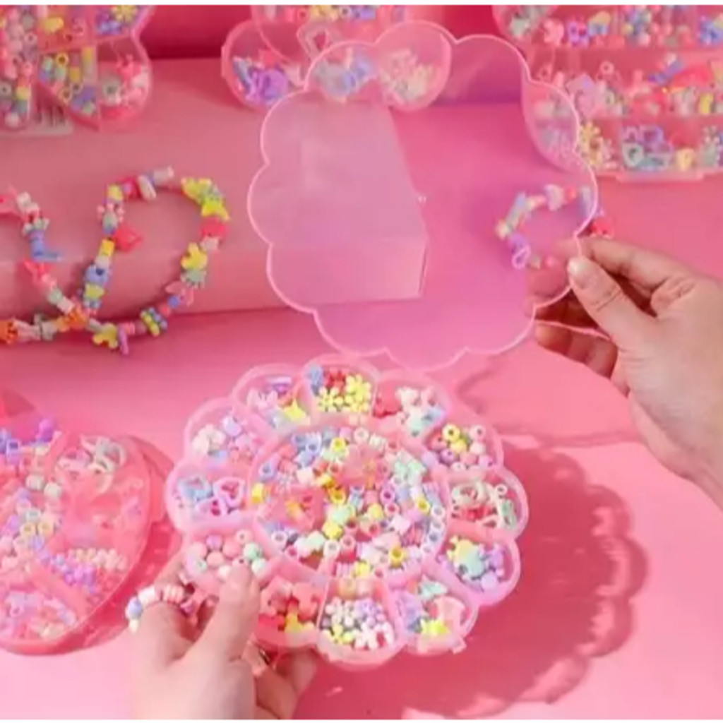 2 Kit Miçanga Infantil Para Pulseira Colar e Brincos Maleta Miçangas + Silicone Presente