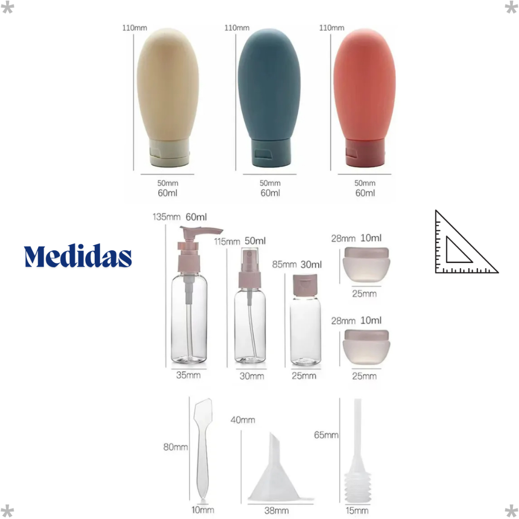 Kit Viagem Frasco Pote Silicone Shampoo Creme completo 90ml Top