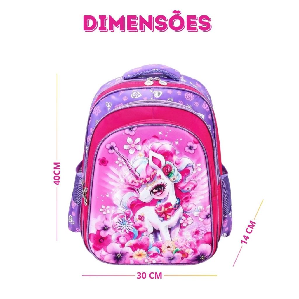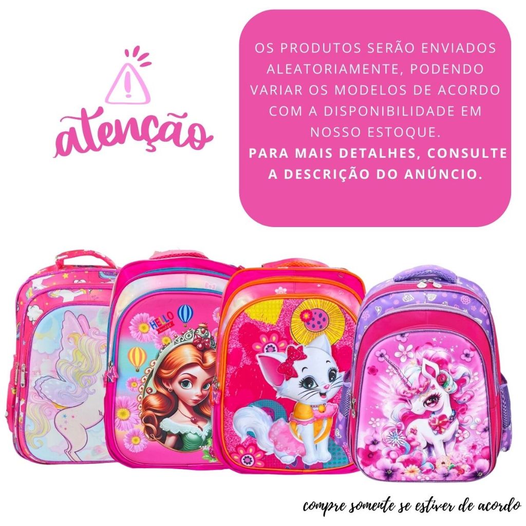 2 Kits Mochila Infantil Feminina Aleatória - Mochila + Lancheira + Estojo