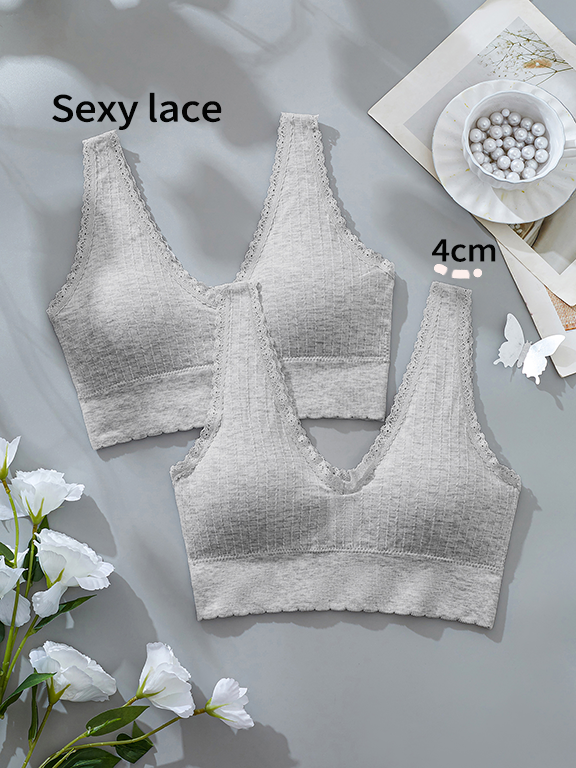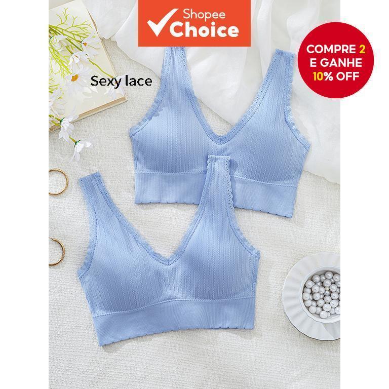 2-Pack Sutiã Sem Costura Confortável com Renda para Mulheres, Sem Fio com Bojos Removíveis