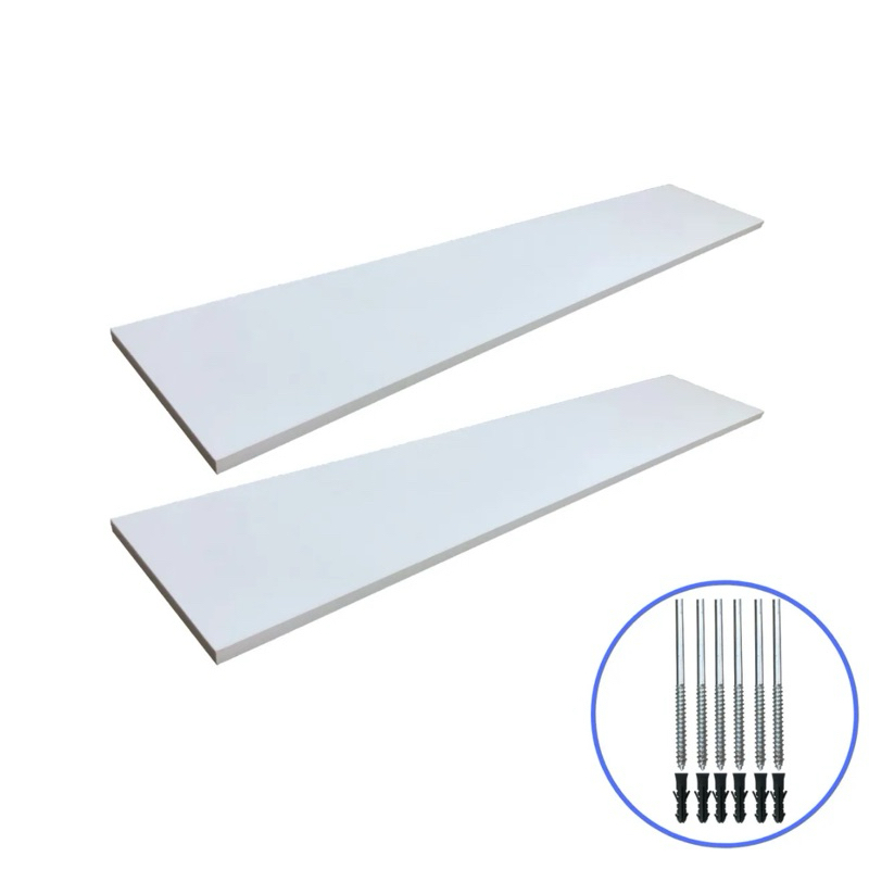 2 Prateleira 110x20 Madeira Mdf Branco Com Suporte Invisível