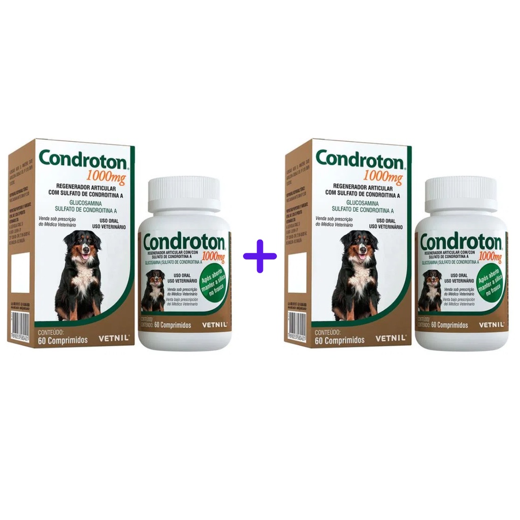 2 Regenerador Condroton 1000mg 60cp Vetnil 2 Unidades