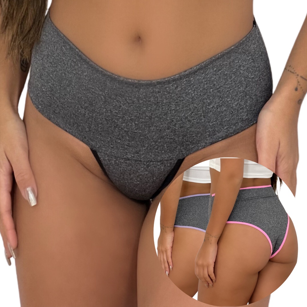 2 Tanga Calcinha Sustentação Segura Barriga Cós viés colorido Modeladora Cintura Alta sacoleira Djl
