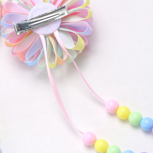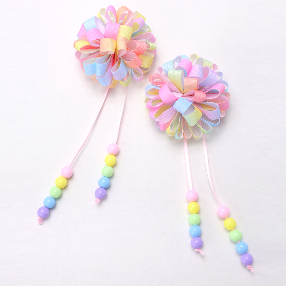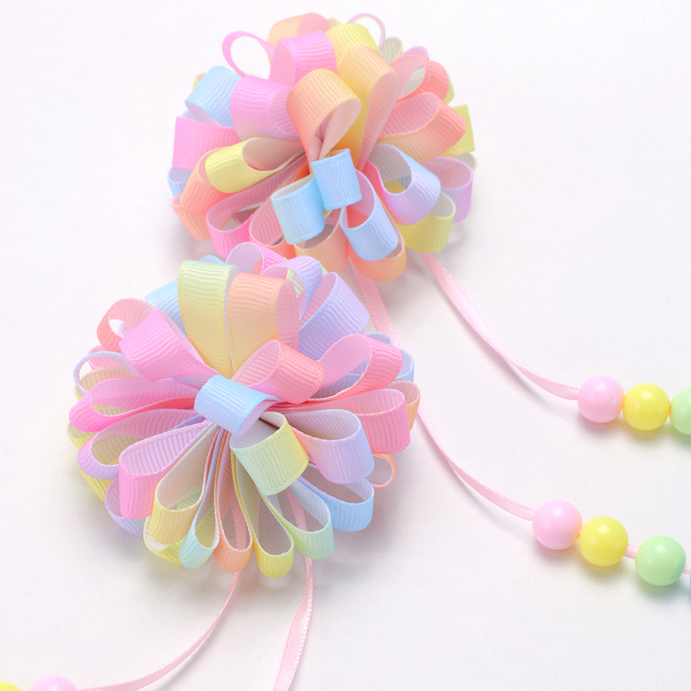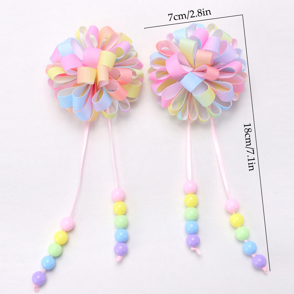 2 Unidades De Grampos De Cabelo Com Fita De Gorgorão | Acessórios Para Meninas Antiderrapantes Contas Longas Coloridas