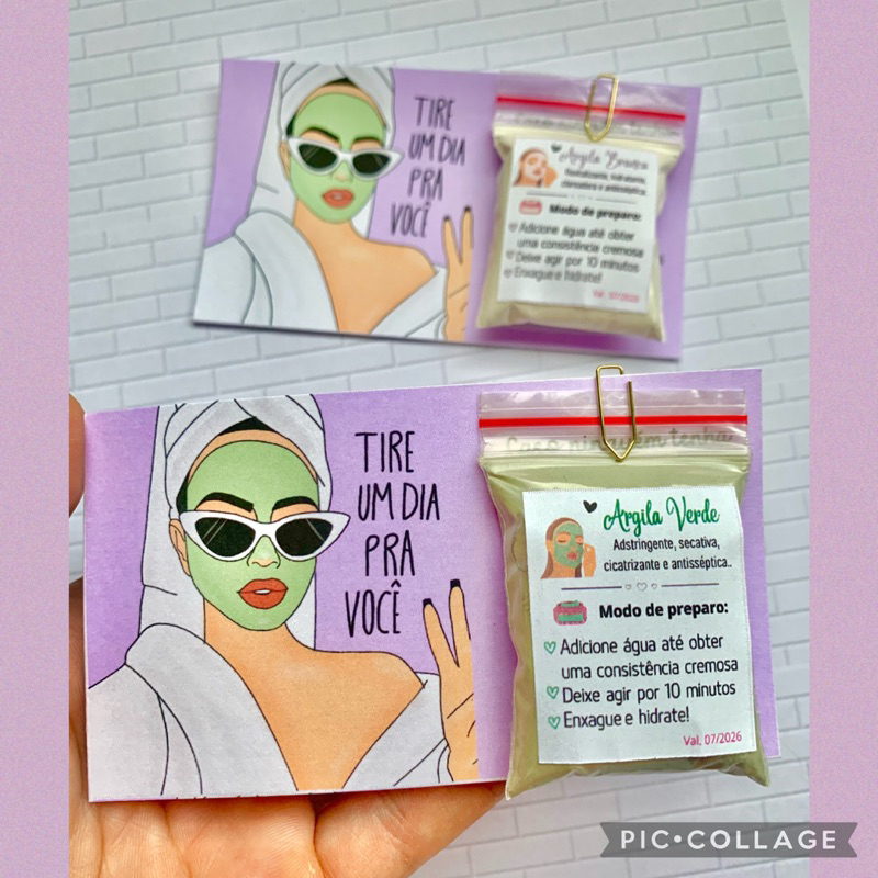 20/50 lembrancinha para cliente mimo sachê de argila branca e verde mimo dia da mulher e aniversário