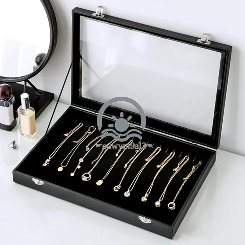 20 Ganchos Colar Organizador Caixa Expositor Bandeja De Jóias Suporte De Armazenamento Com Tampa Transparente