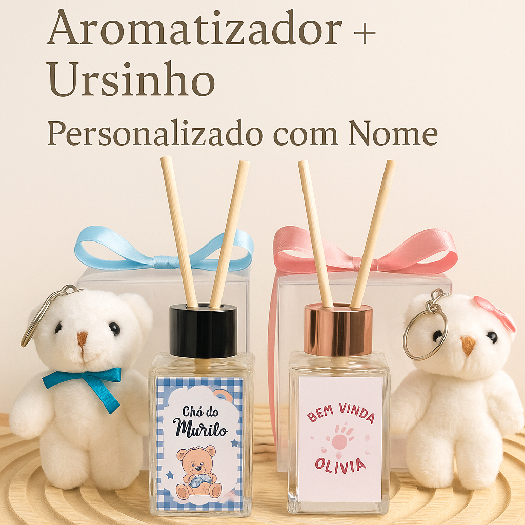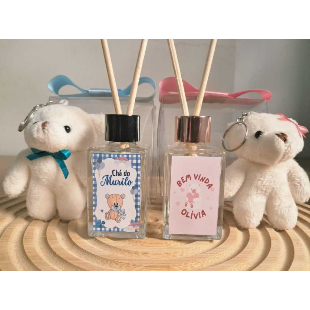 20 Lembrancinha Maternidade Luxo com Ursinho + Aromatizador Personalizado Bebê, Chá de Bebê e Batizado