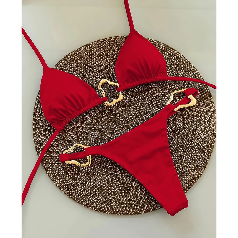 2024 Novo Biquíni Maiô Feminino Dividido Cor Sólida Sexy Tira Titular