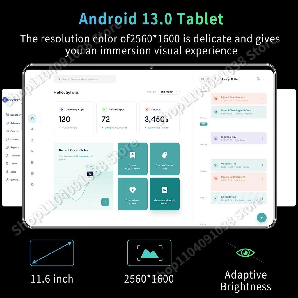 2025 Novo Android 13.0 Tablet PC de 12 polegadas 16 Gb RAM 1 TB ROM 10 Core 5G Wifi