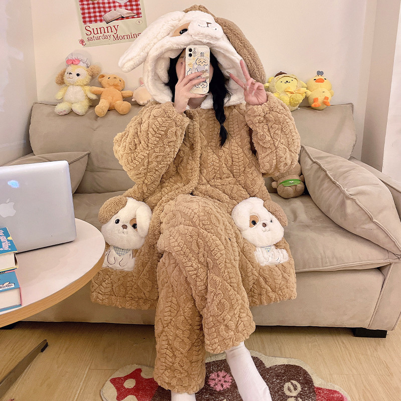 2025 novo estilo pijamas para meninas inverno Coral velo forro de lã engrossado três camadas acolchoado crianças meninas