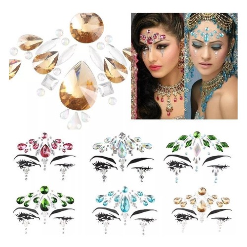 20x Adesivo Glitter Pedras Joy Rosto Bindi Indiano Carnaval