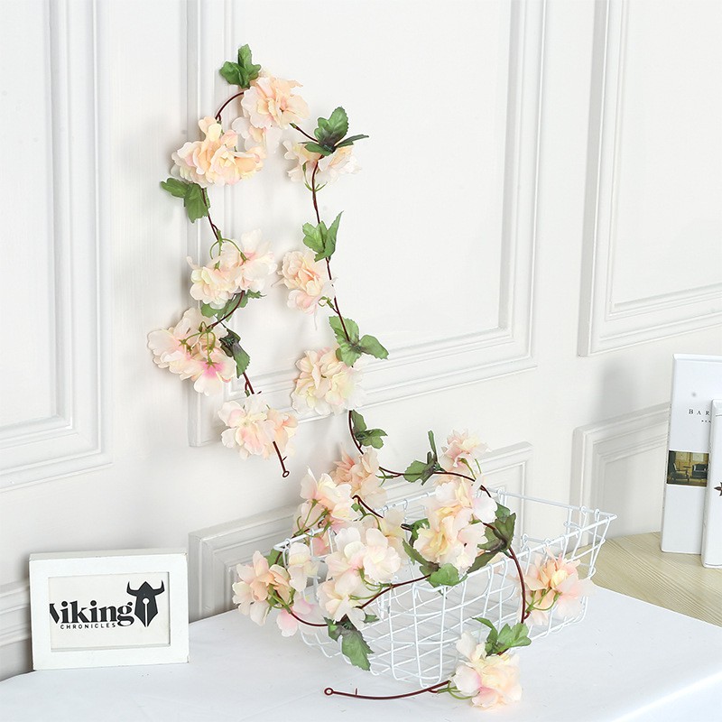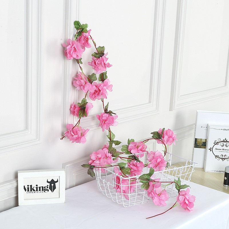 230cm/91in Long Silk Sakura Cherry Vine Lvy Casamento Arco Decoração Layout Home Party Rattan Wall Hanging Garland Wreat
