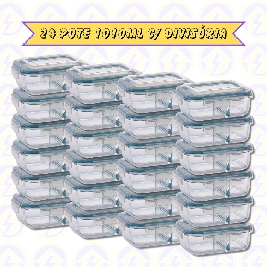 24 Pote Hermético 1010ML c/ Divisória Vidro Resistente Forno Freezer