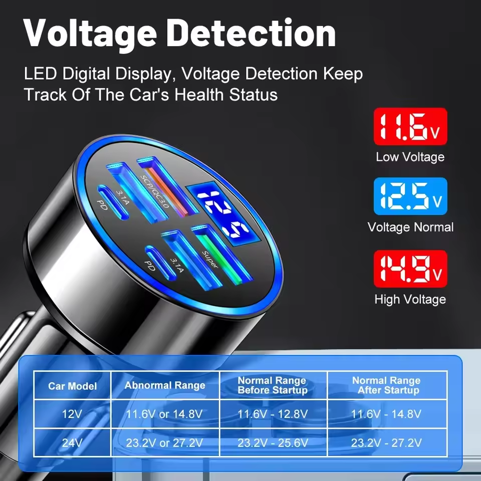 250W Carregador de Carro USB PD QC3.1 USB C Carregador de Celular para Carro Adaptador Tipo C para iPhone Samsung